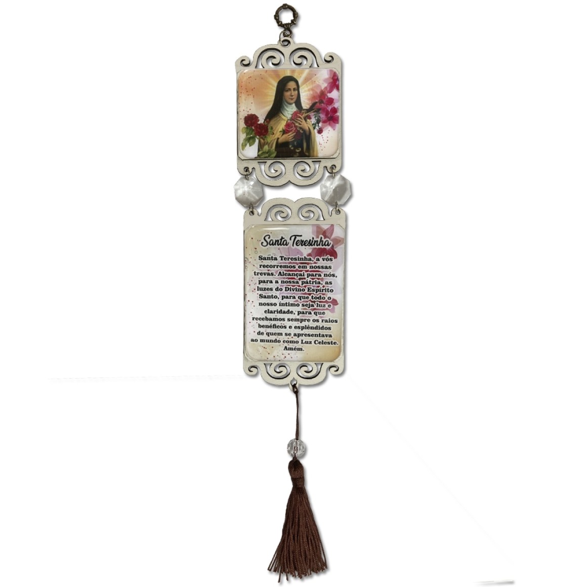 MO413708 - Móbile Santa Terezinha das Rosas MDF Resinado - 36x6,3cm