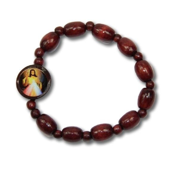 *Pulseira Jesus Misericordioso Madeira - 8x1,6cm.