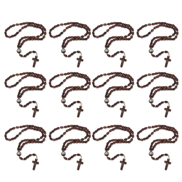 TE942428P12 - Terço São Padre Pio de Pietrelcina Madeira c/ 12un. - 45cm