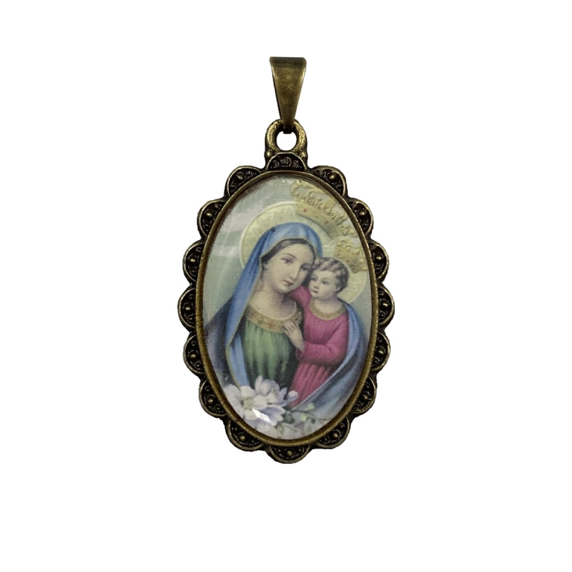 *Medalha N. Sra. do Bom Conselho Rendada Ouro Velho - 4,2x2,5cm.