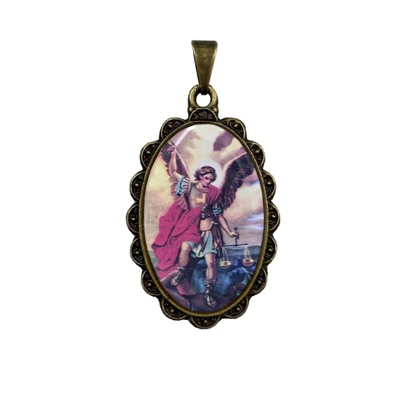 MD128915 - Medalha São Miguel Arcanjo Rendada Ouro Velho - 4,2x2,5cm