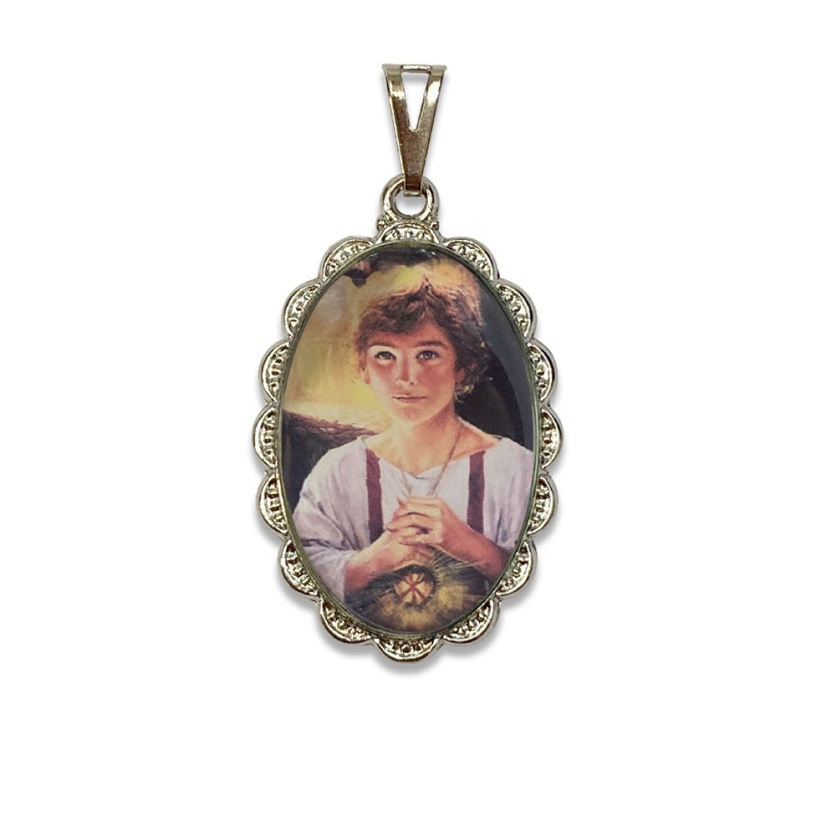MD128500 - Medalha São Tarcísio Rendada Níquel - 4,2x2,5cm