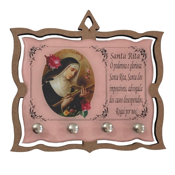 PC380626 - Porta Chaves Santa Rita de Cássia MDF Resinado - 15,5x14cm