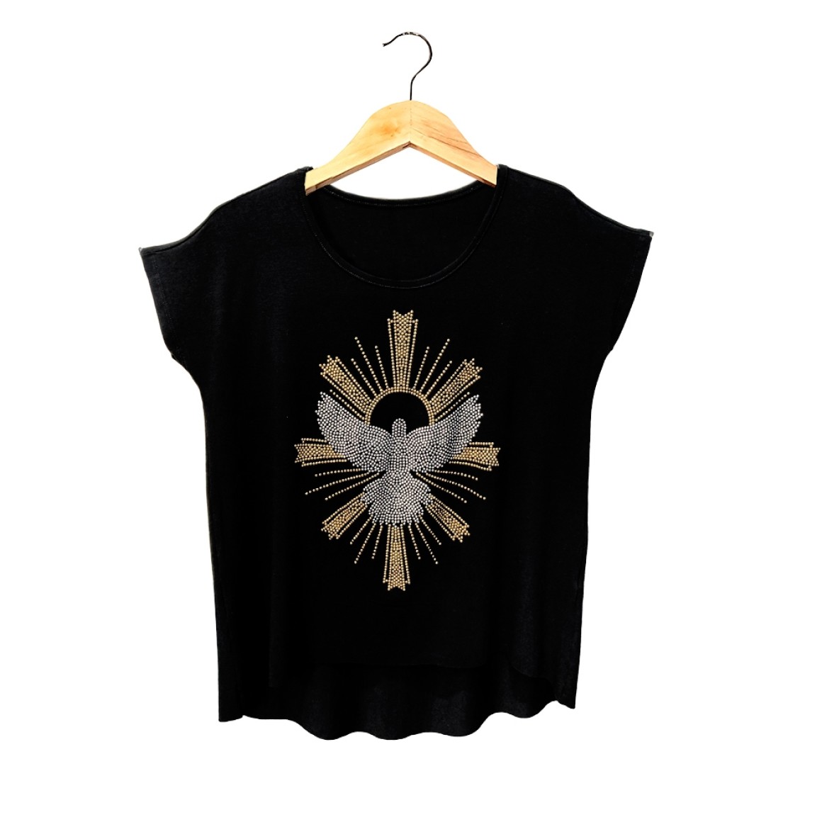 - Não passar o ferro em cima da Aplicação de Strass;