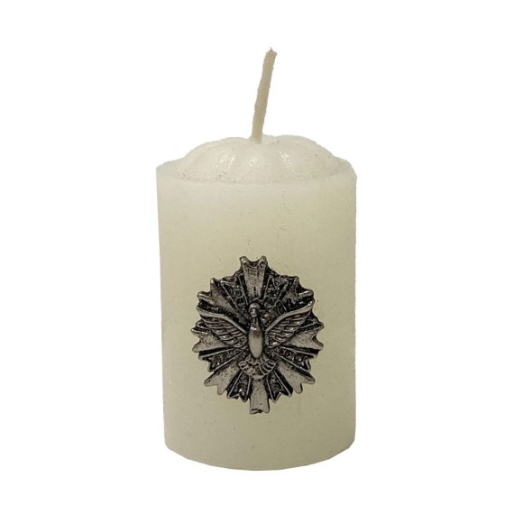 VE750322 - Vela Divino Espírito Santo c/ Pingente Níquel Envelhecido - 6x4cm