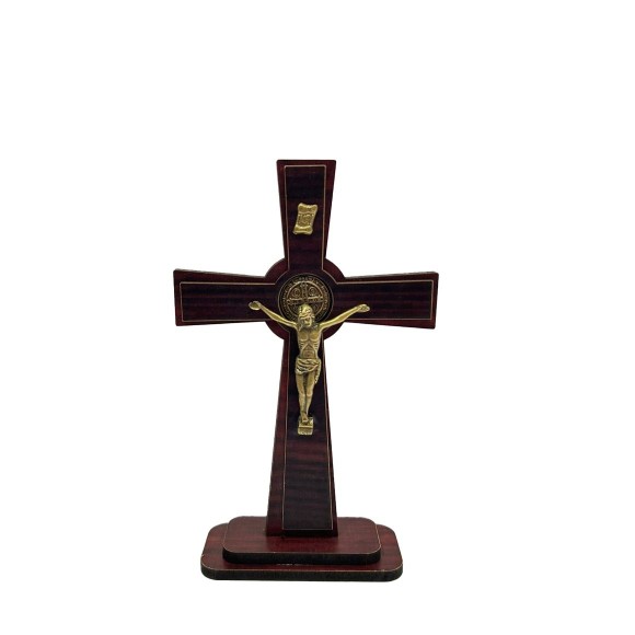 *Crucifixo de Mesa São Bento Madeira - 19,5x12cm.