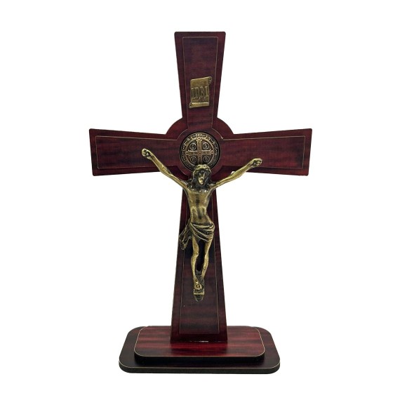 *Crucifixo de Mesa São Bento Madeira - 29x19cm.