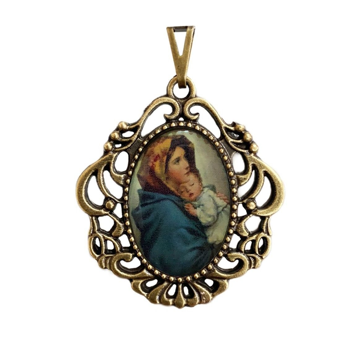 *Medalha N. Sra. Do Repouso Camafeu Ouro Velho - 4,5x4cm.