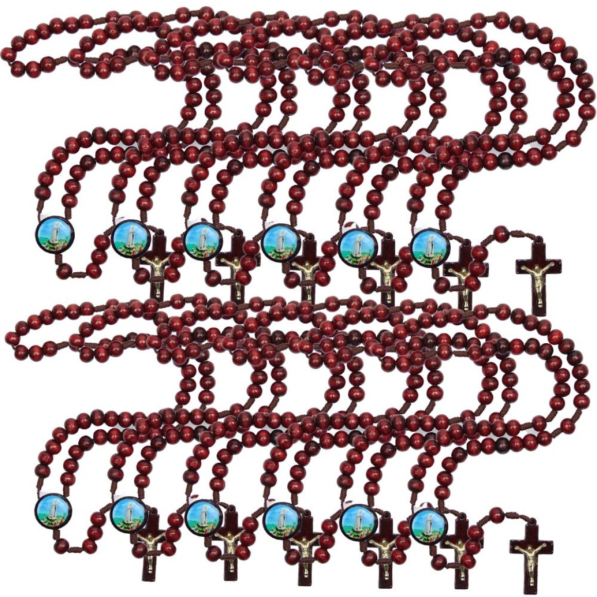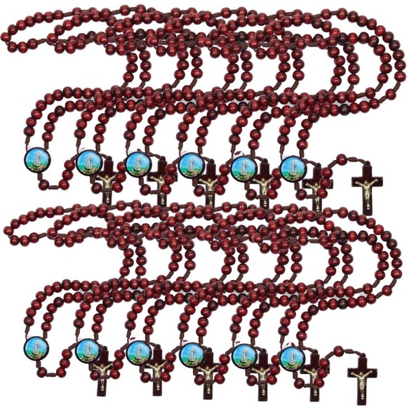 2. TE940018P12 - Terço N. Sra. De Fátima Madeira c/ 12un. - 37cm