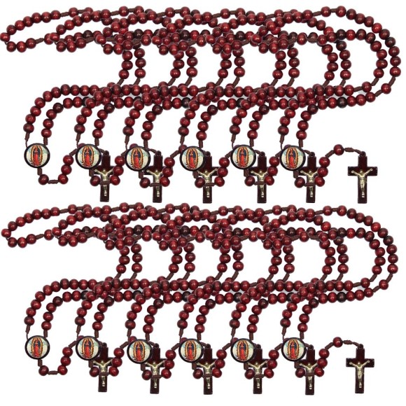 TE940131P12 - Terço N. Sra. De Guadalupe Madeira c/ 12un. - 37cm