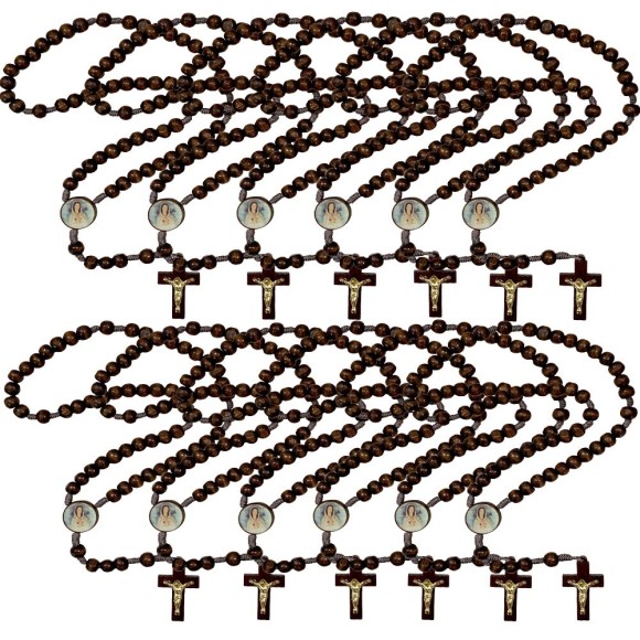 TE940155P12 - Terço N. Sra. Rosa Mística Madeira c/ 12un. - 37cm
