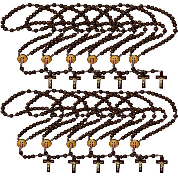 TE940178P12 - Terço N. Sra das Lágrimas Madeira c/ 12un. - 37cm