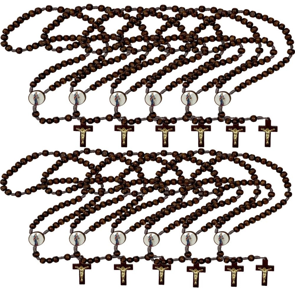 *Terço Maria Passa Na Frente Madeira c/ 12un. - 37cm.