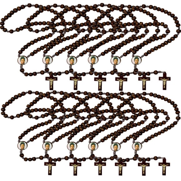2. TE940350P12 - Terço Santa Josefina Bakhita Madeira c/ 12un. - 37cm