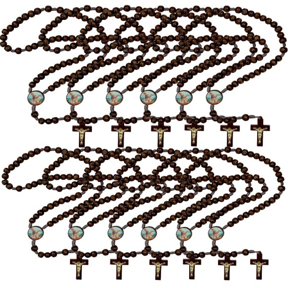 *Terço São Miguel Madeira c/ 12un. - 37cm.