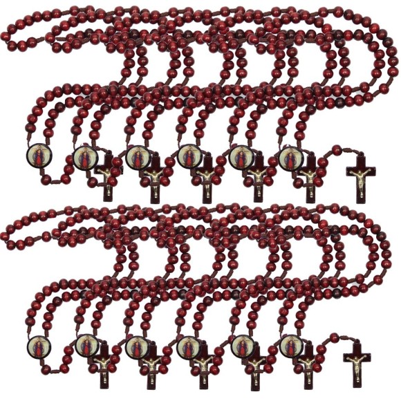 *Terço Santas Chagas de Jesus Madeira c/ 12un. - 37cm