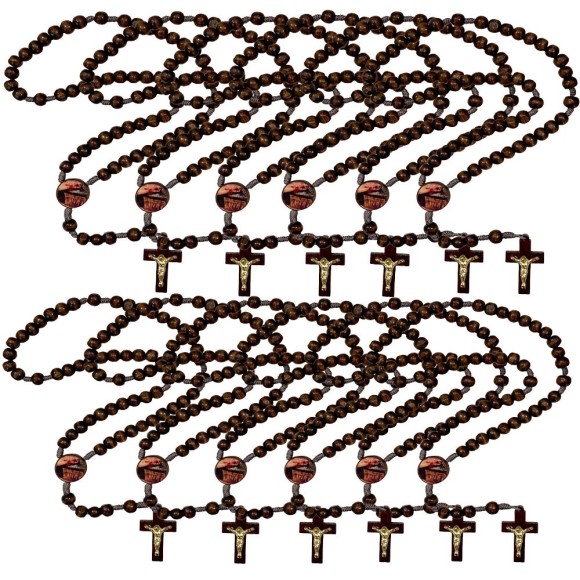 TE940729P12 - Terço Mãos Ensanguentadas de Jesus Madeira c/ 12un.- 37cm