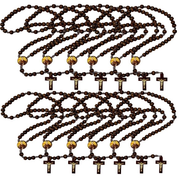 TE940457P12 - Terço São Frei Galvão Madeira c/ 12un. - 37cm