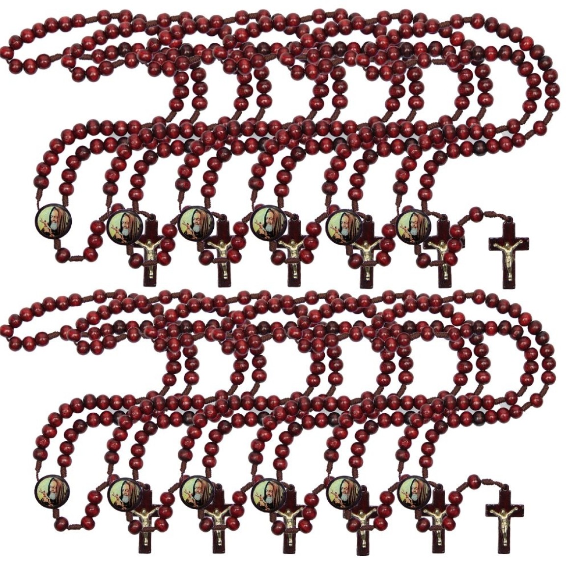 *Terço São Padre Pio de Pietrelcina Madeira c/ 12un. - 37cm.