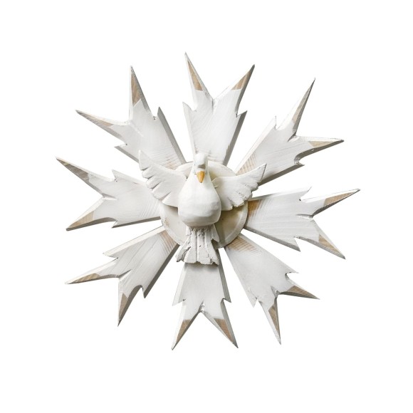 DF1983000 - Divino Espírito Santo Resplendor de Parede Madeira Branca - 31x31cm