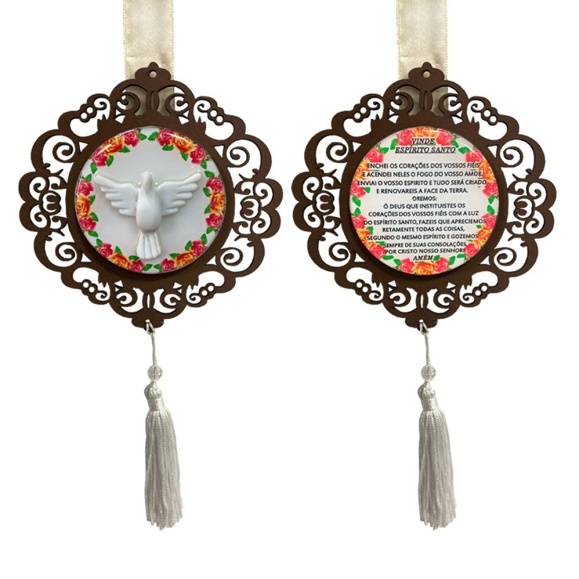 EP38155 - Escapulário de Porta Divino Espírito Santo MDF Tabaco - 136x13cm