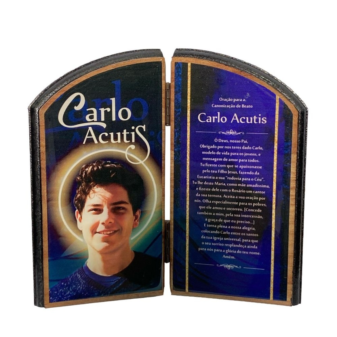 *Adorno de Mesa São Carlo Acutis MDF Resinado - 15x16cm.