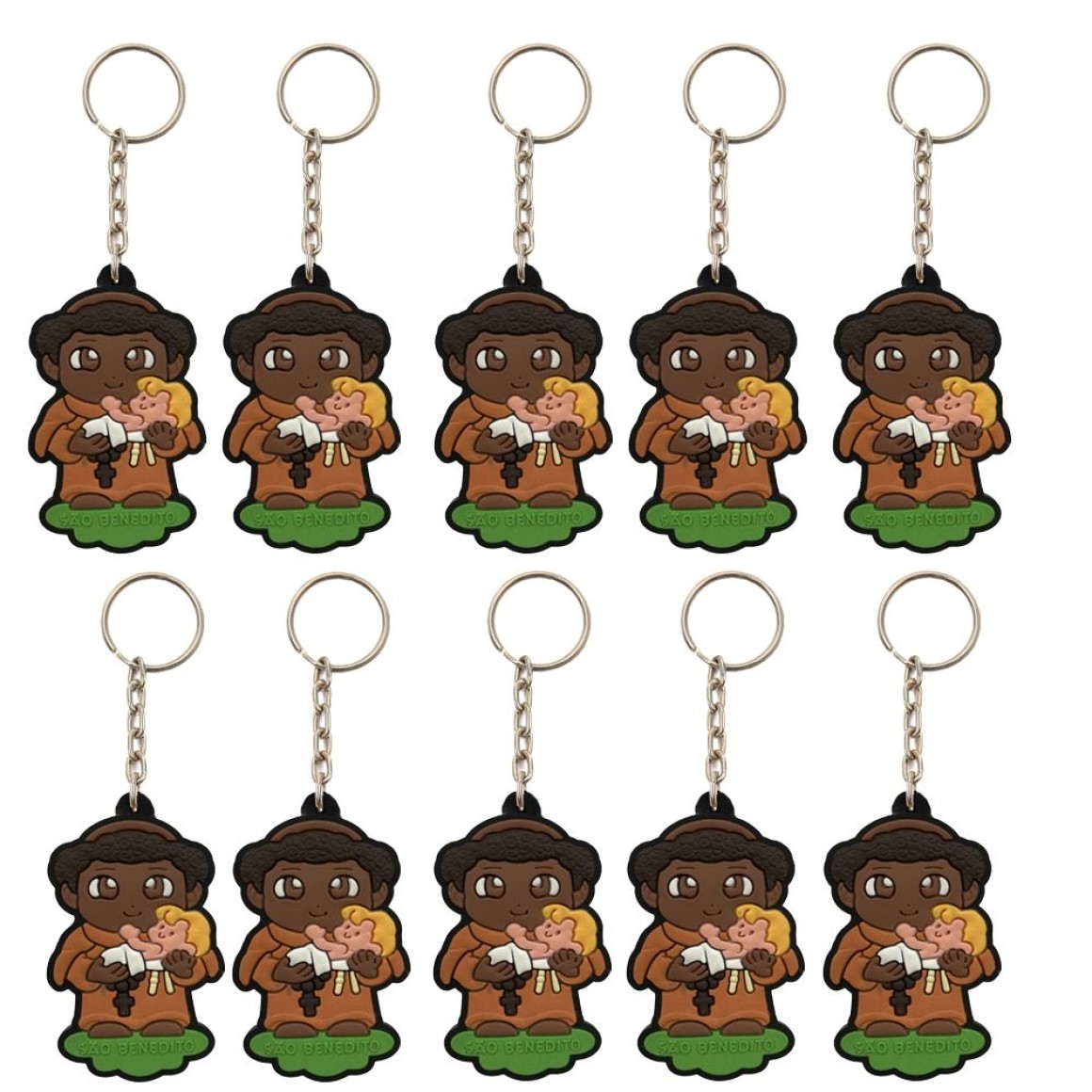 *Chaveiro São Benedito Emborrachado c/ 10un.- 11x3cm.