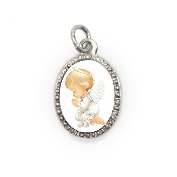 *Medalha de Alumínio Oval Grande Prata c/ 6un. Anjo da Guarda - 2X1,3cm.