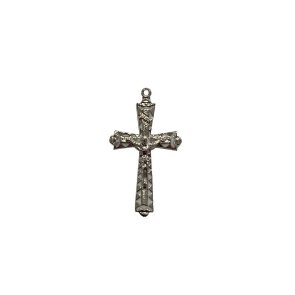 *Crucifixo Metal Níquel Resinado Branco - 4,6x2,6cm.