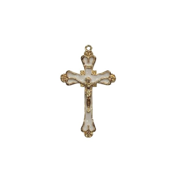 CZ861775 - Crucifixo Metal Dourado Resinado Branco - 5,7x3,4cm