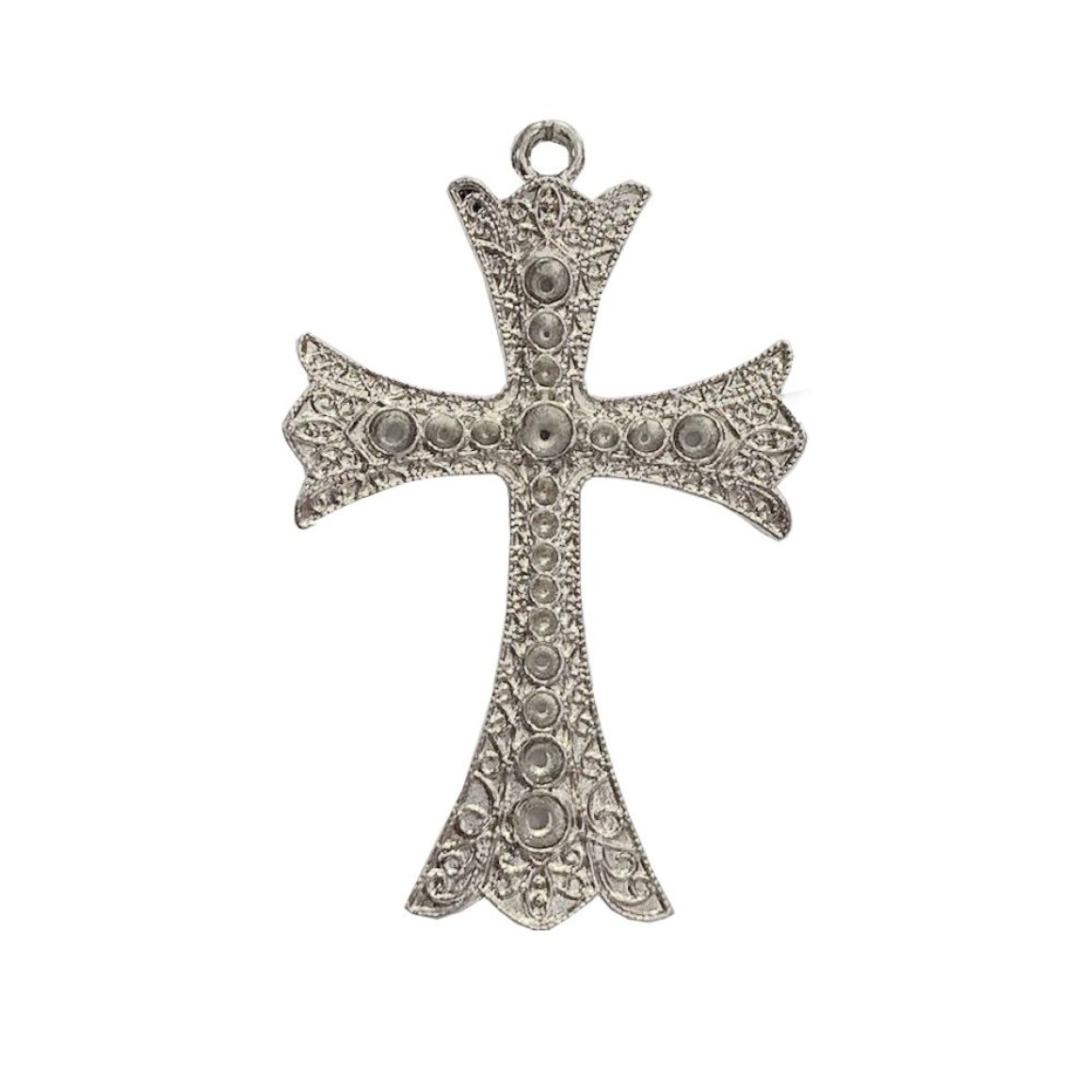 CZ851510 - Cruz Metal Níquel Duplo - 8,3x5,9cm
