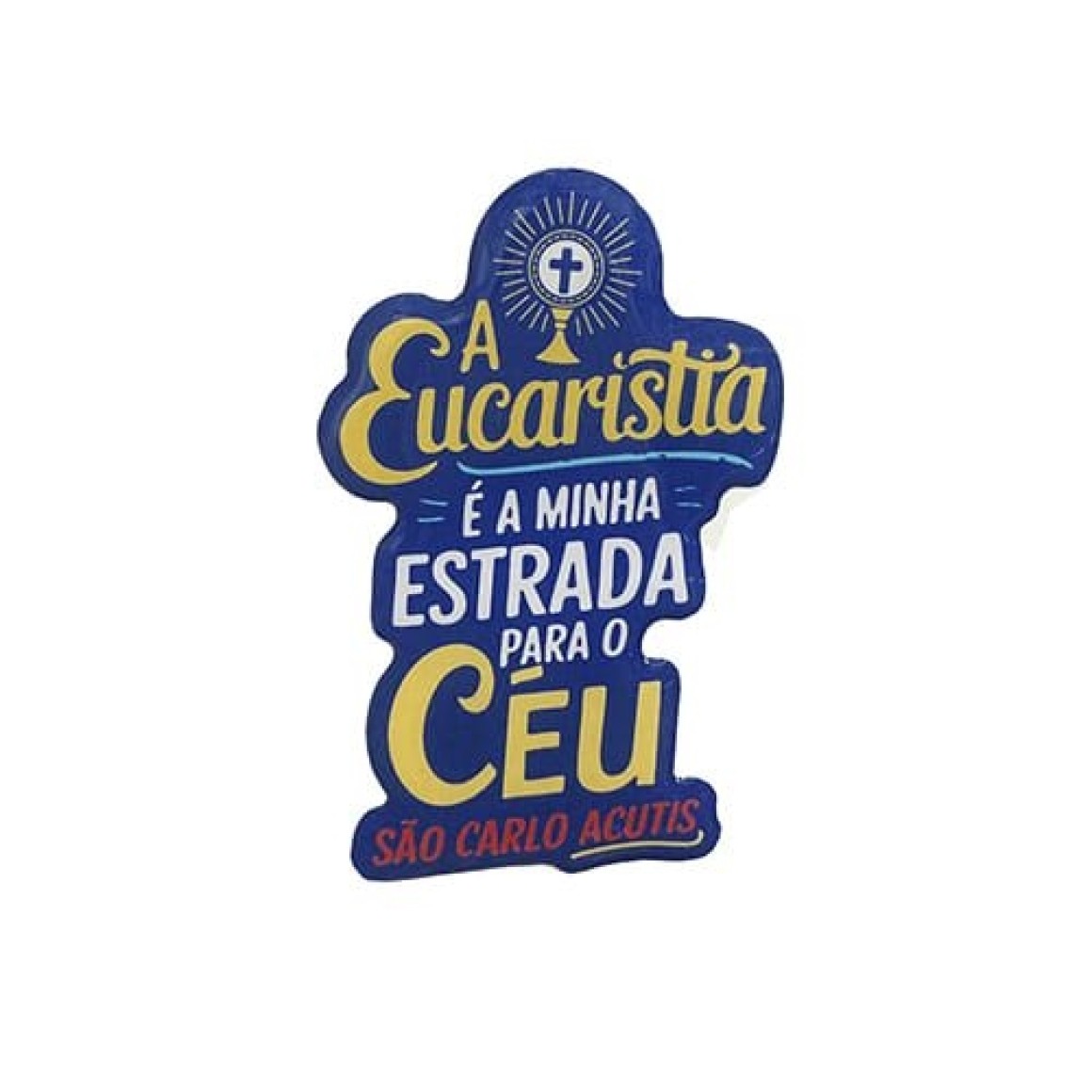 *Adesivo "A eucaristia é a minha estrada para o céu" resinado - 8x5cm.