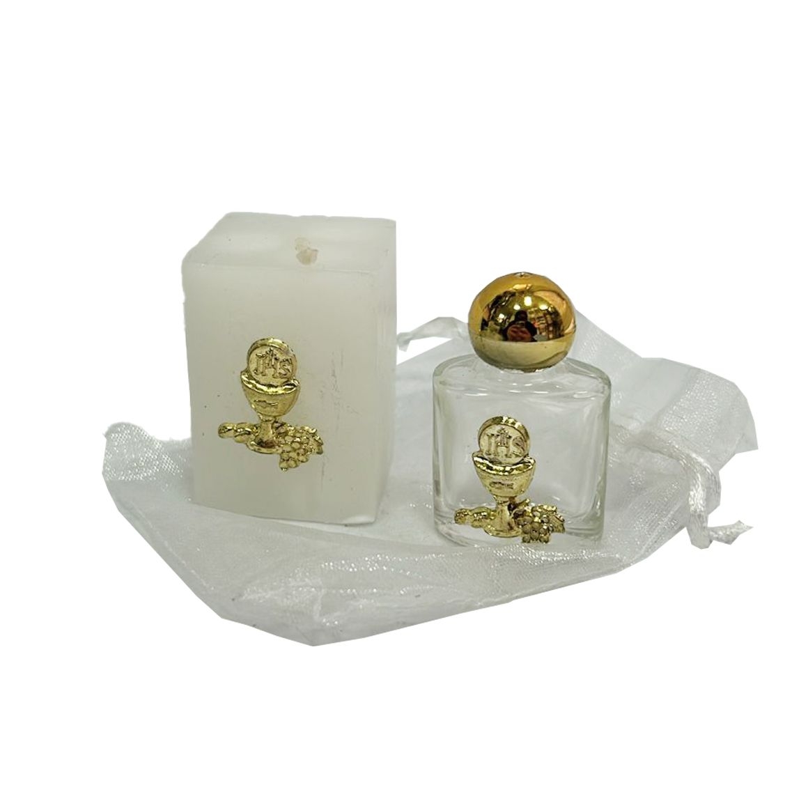 KT112500 - Kit Primeira Eucaristia c/ Vela e Garrafa de Água Benta - 10ml
