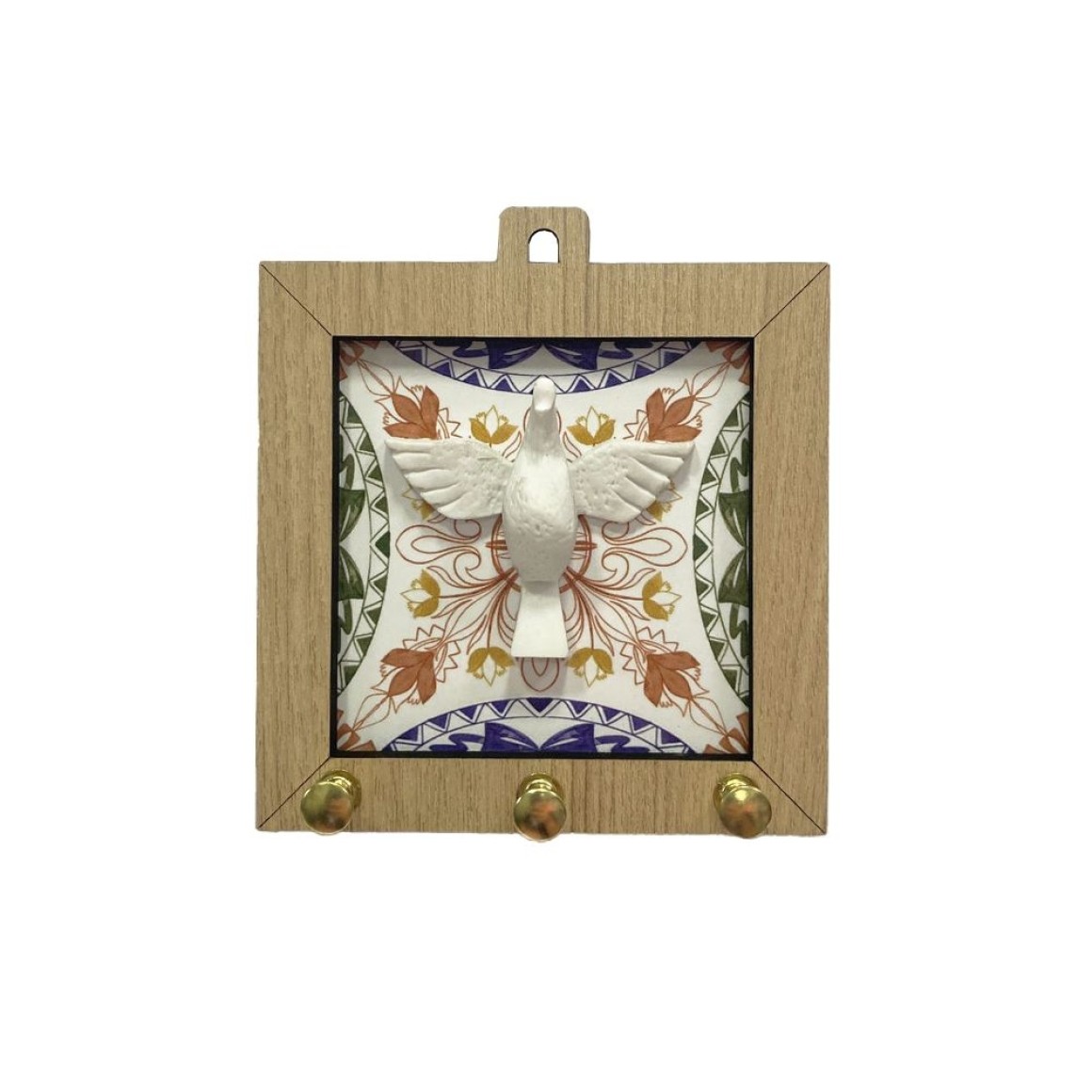 *Porta Chaves Divino Espírito Santo MDF Marfim- 11,5x12,5cm.
