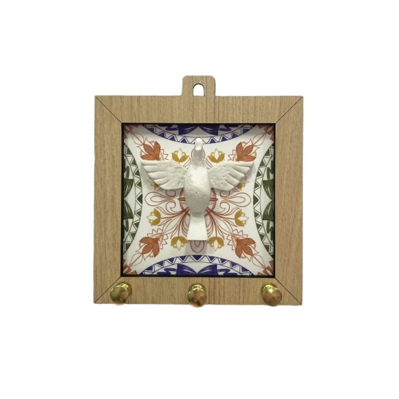 PC380808 - Porta Chaves Divino Espírito Santo MDF Marfim- 11,5x12,5cm