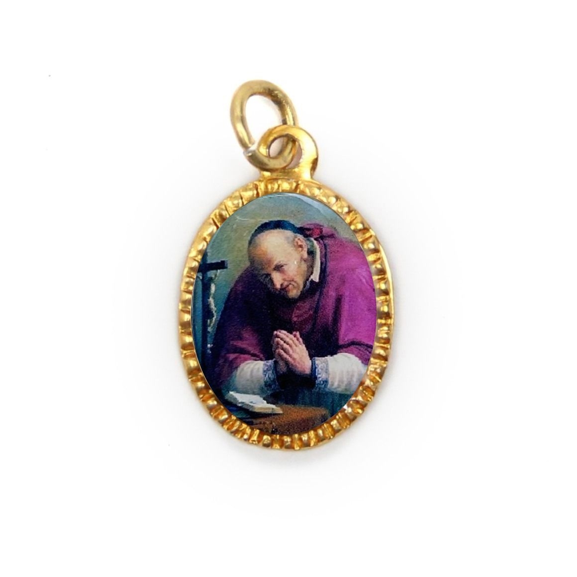 MD103340P10 - Medalha de Alumínio Oval Grande Dourada c/ 10un. Santo Afonso Maria de Ligório - 2X1,3cm