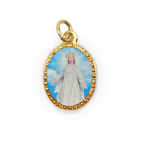 *Medalha de Alumínio Oval Dourada c/ 10un N. Sra. Do Líbano - 2x1,3cm.