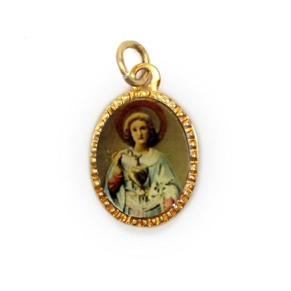 *Medalhas Alumínio Oval Dourada c/ 10un Santa Zita - 2x1,3cm.