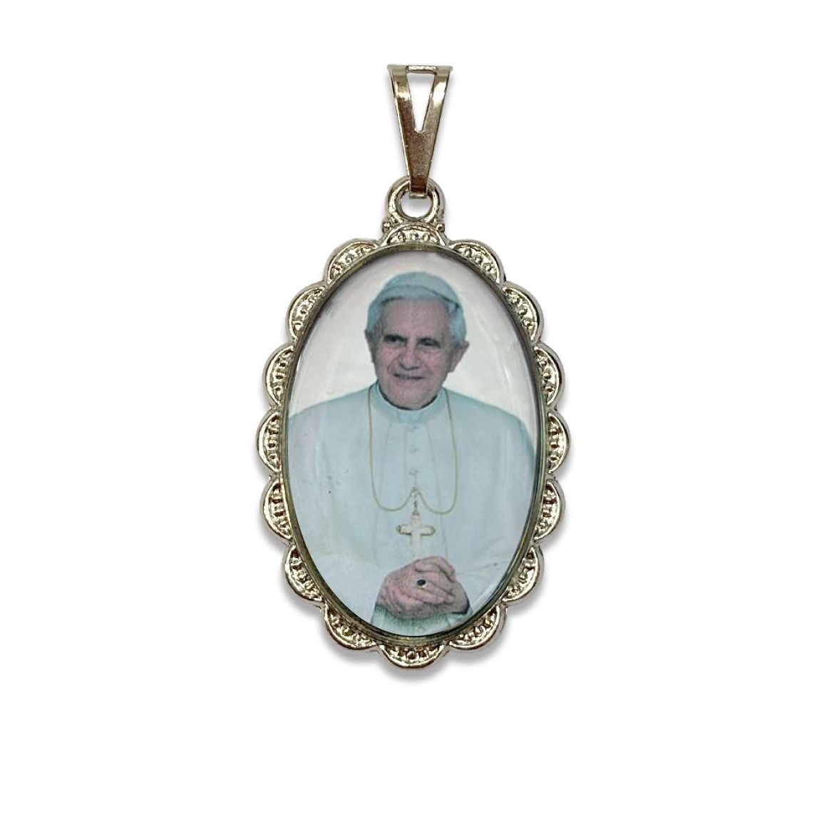 *Medalha Papa Bento XVI Rendada Níquel - 4,3x2,7cm.