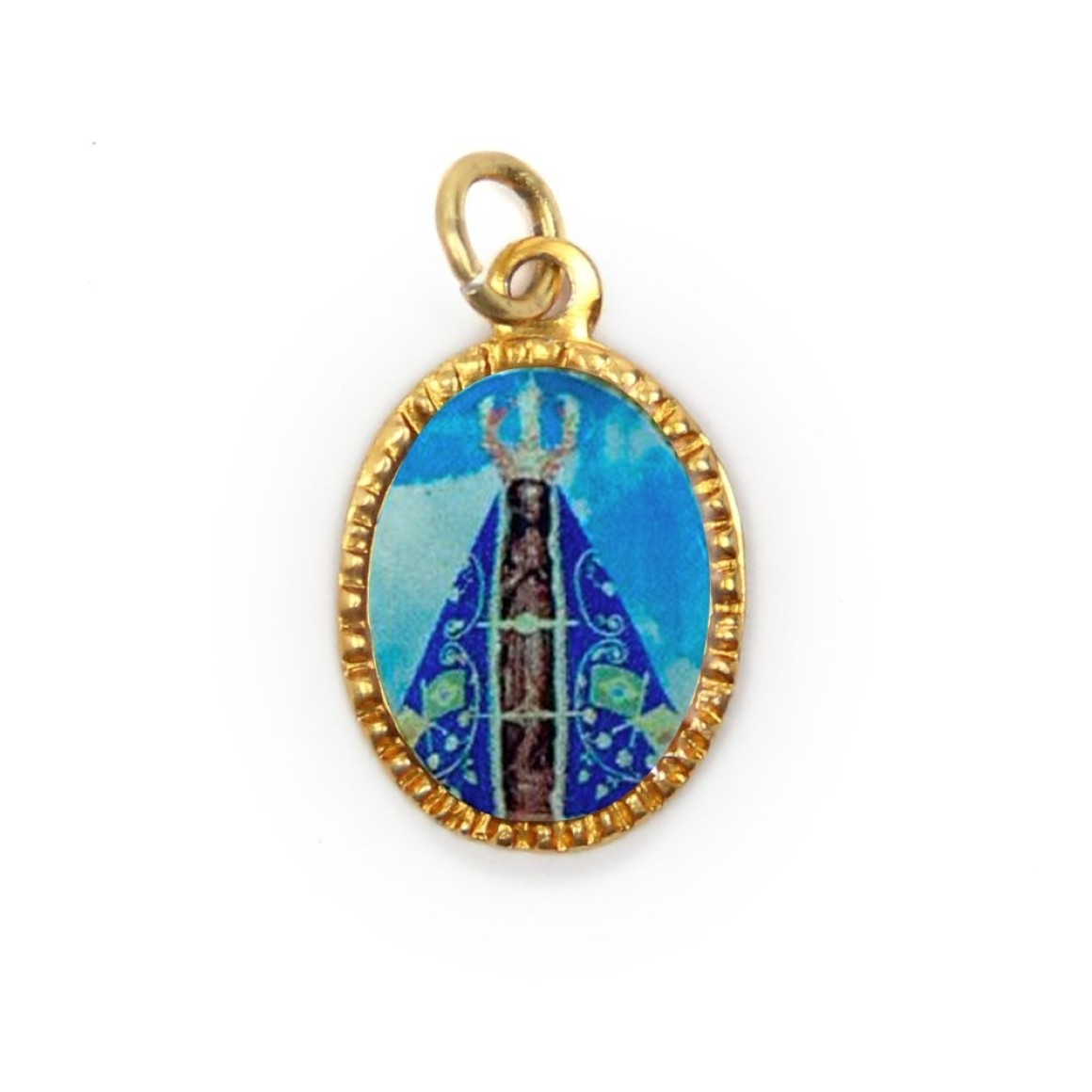 *Medalha de Alumínio Oval Dourada c/ 10un. N. Sra. Aparecida - 2X1,3cm.