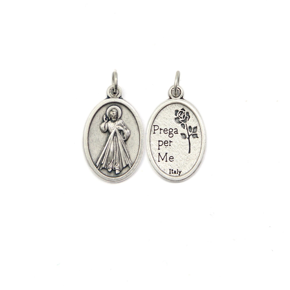 *Medalha Jesus Misericordioso Italiana Oval Prateada c/ 2un. - 2,5x1,7cm