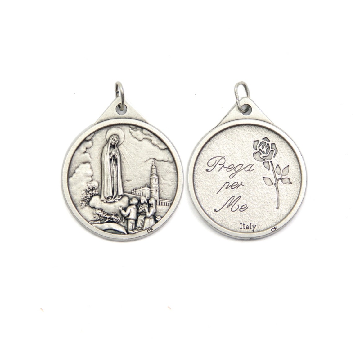 *Medalha N. Sra. De Fátima Italiana Redonda Prateada - 3,8x3cm