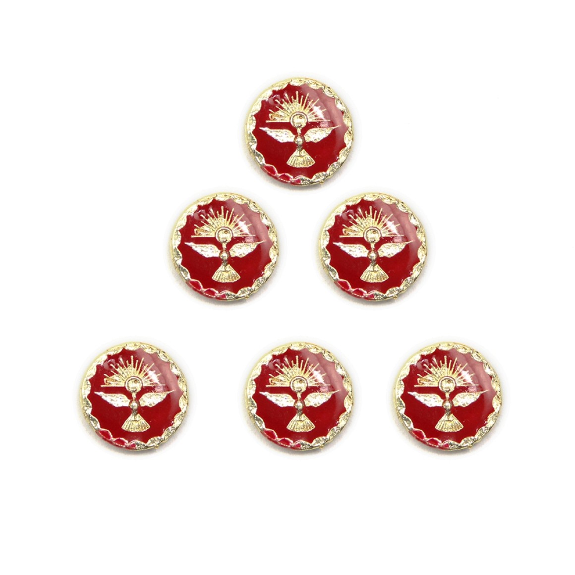 BO48032P6 - Botton Divino Espírito Santo Vermelho c/ 6un. - 1,5x1,5cm