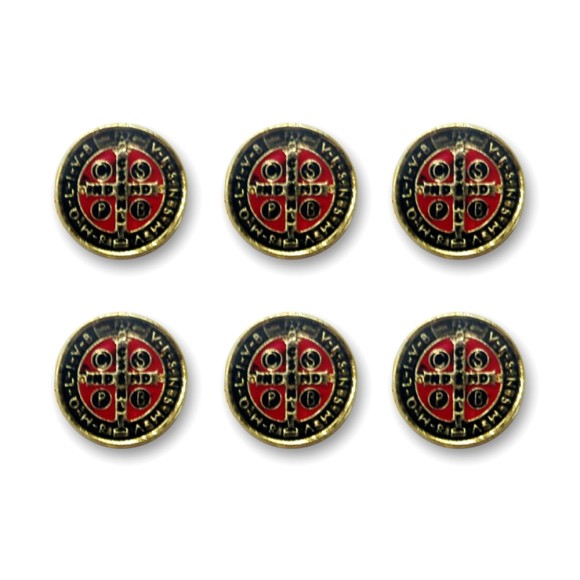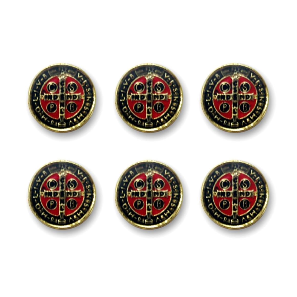 BO116050P6 - Botton Medalha de São Bento c/ 6un. Dourado - 1,4x1,4cm