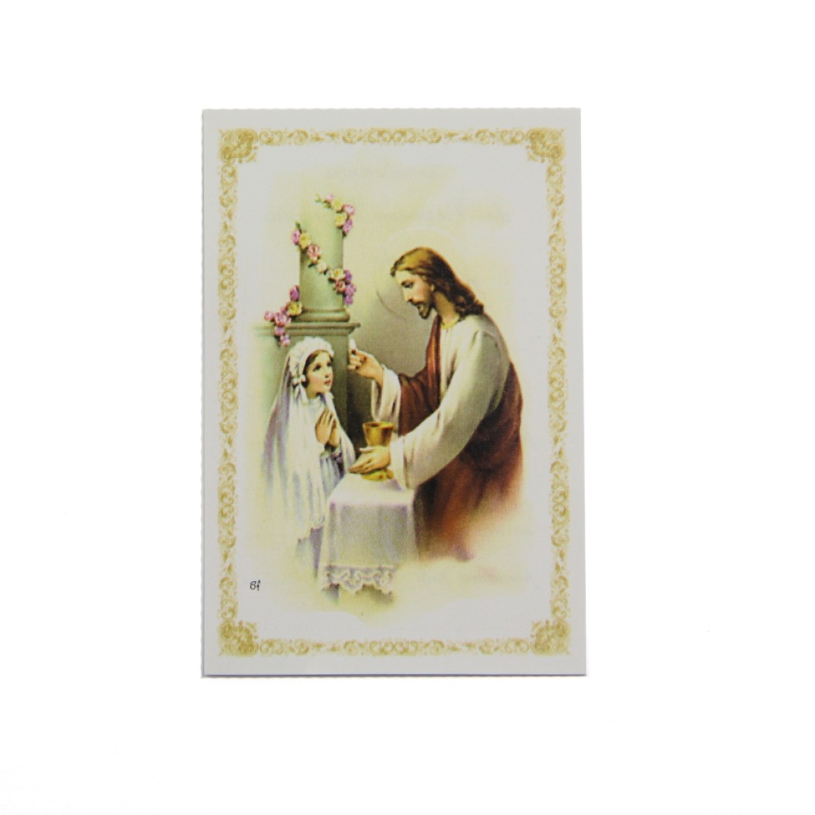 *Cartão Lembrança Primeira Eucaristia Menina c/ Dezena - 9,5x6,5cm.