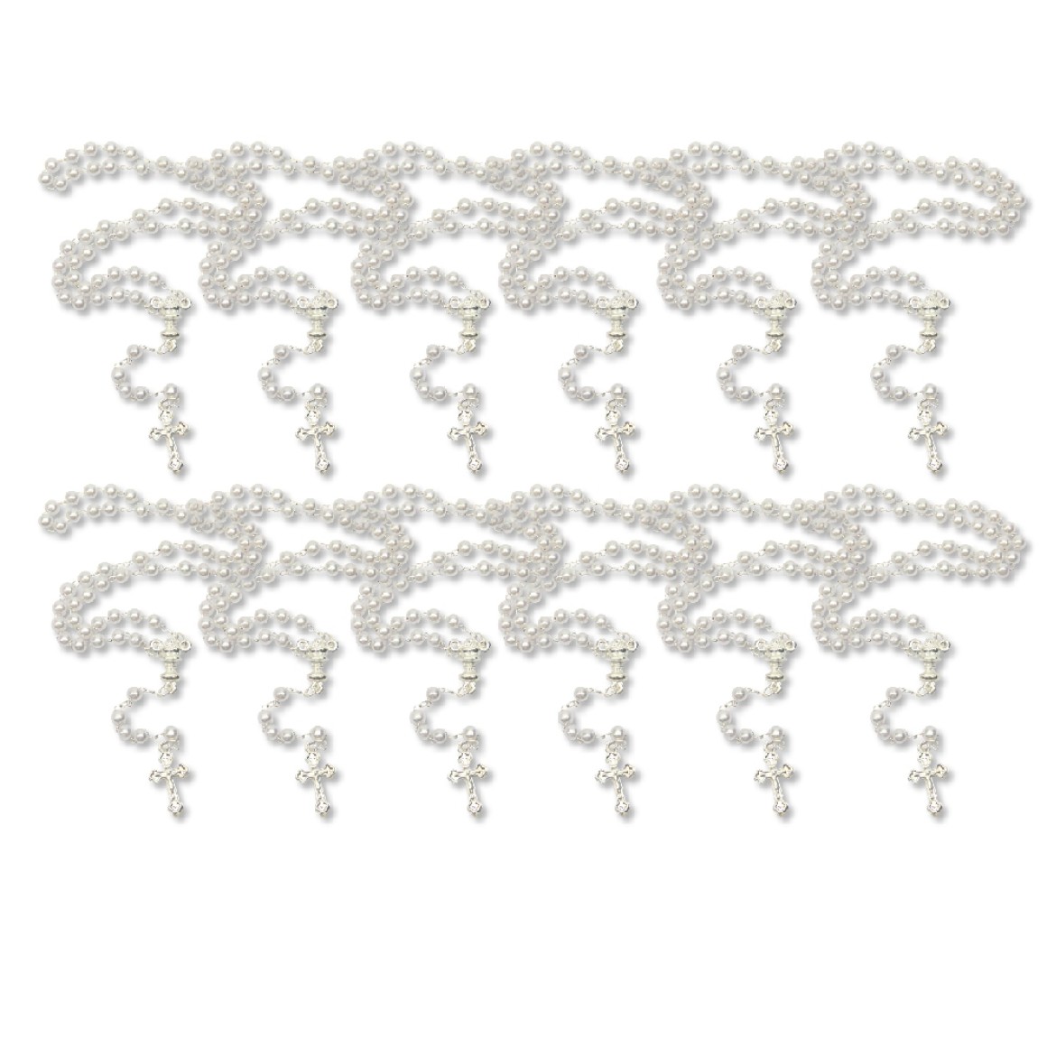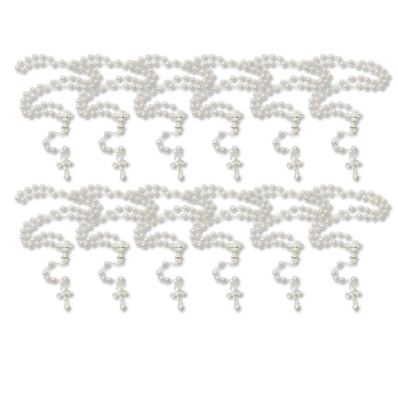 TE112020P12 - Terço de Pérola n°4 c/ 12un. Primeira Eucaristia Branco - 26cm