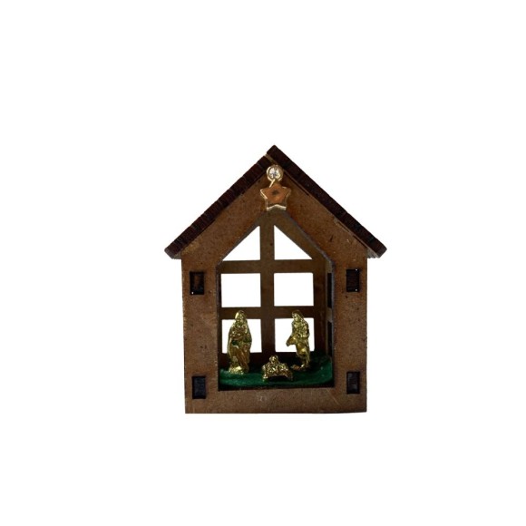 IM32113 - Presépio Dourado c/ Casinha de MDF - 6x4cm