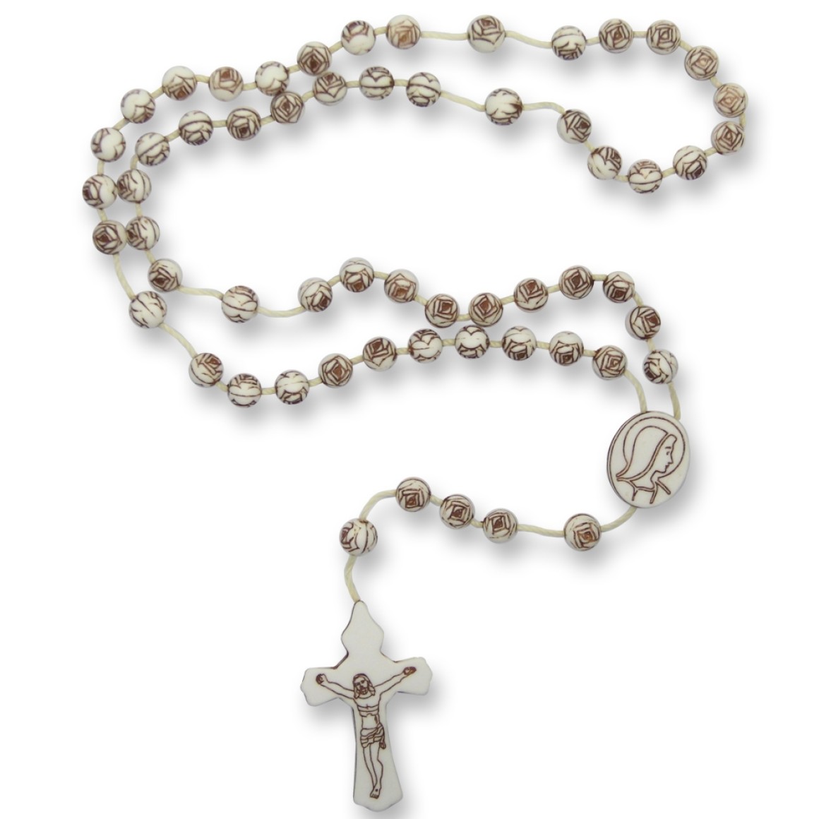 *O TERÇO DE ACRILICO contém contas de Rosas envelhecidas nº 6 e fio de nylon;
