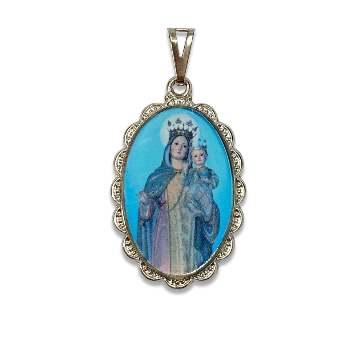 *Medalha N. Sra. Das Mercês Rendada Níquel - 4,1x2,6cm.