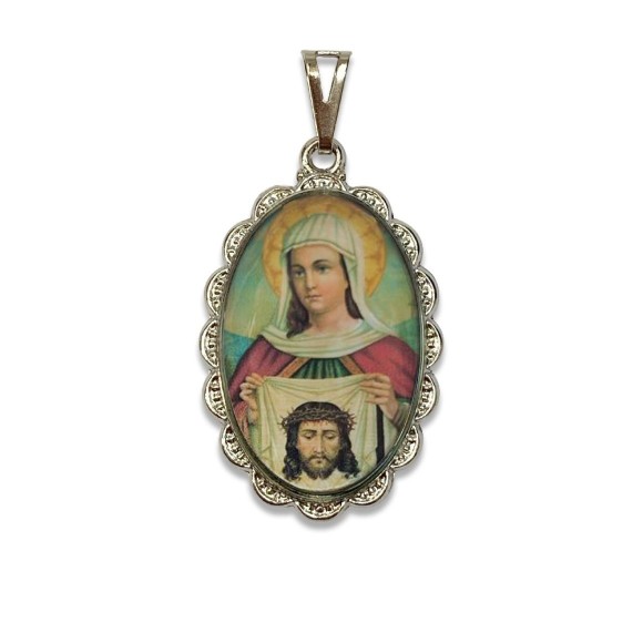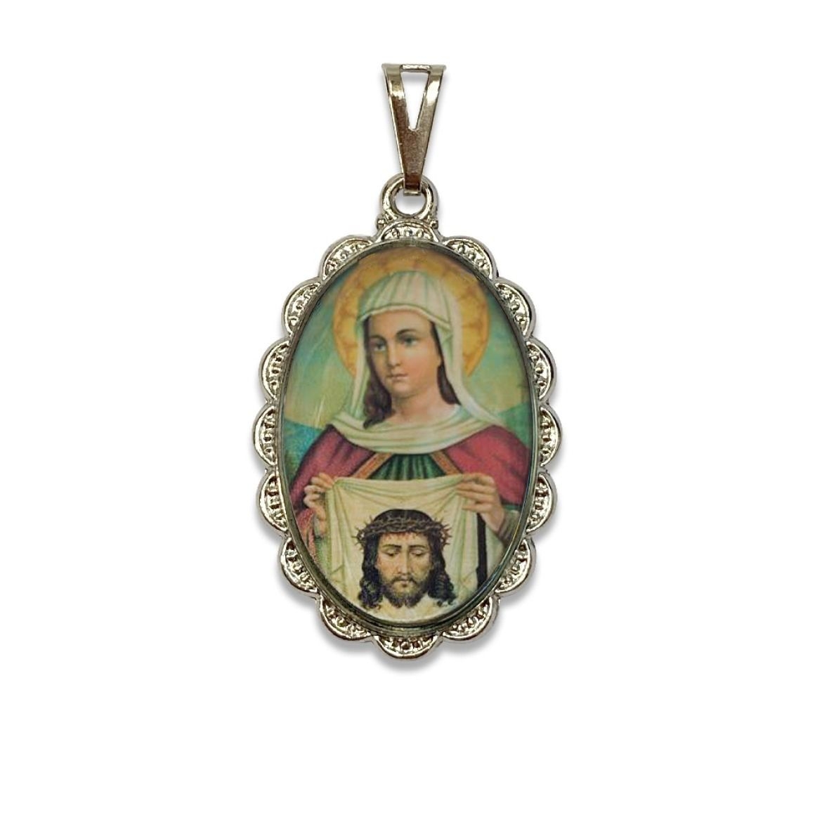 MD128084 - Medalha Santa Verônica Rendada Níquel - 5x2,5cm
